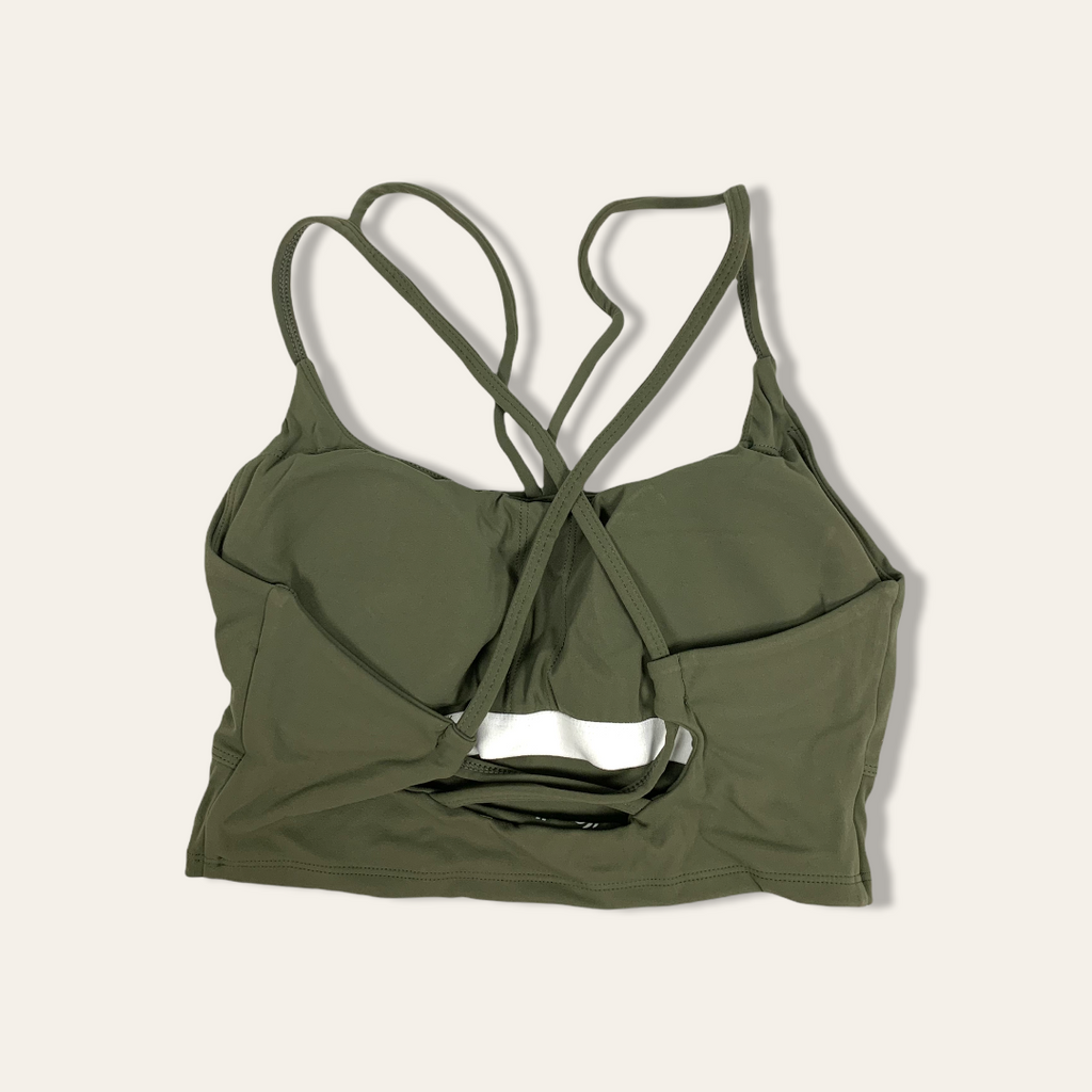 This is our first Long Line Sports Bra. It is a very versatile top that has 2 straps on the front and 4 straps in the back for a very fashionable look. It also has removable padding.